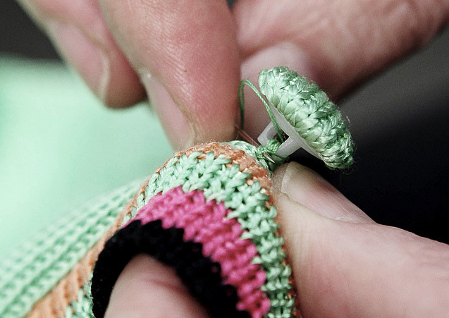Gemeinsam mit selbst hergestellten Strickwaren bilden sie das Fundament der exklusiven Mahi Degenring Couture Kreationen.